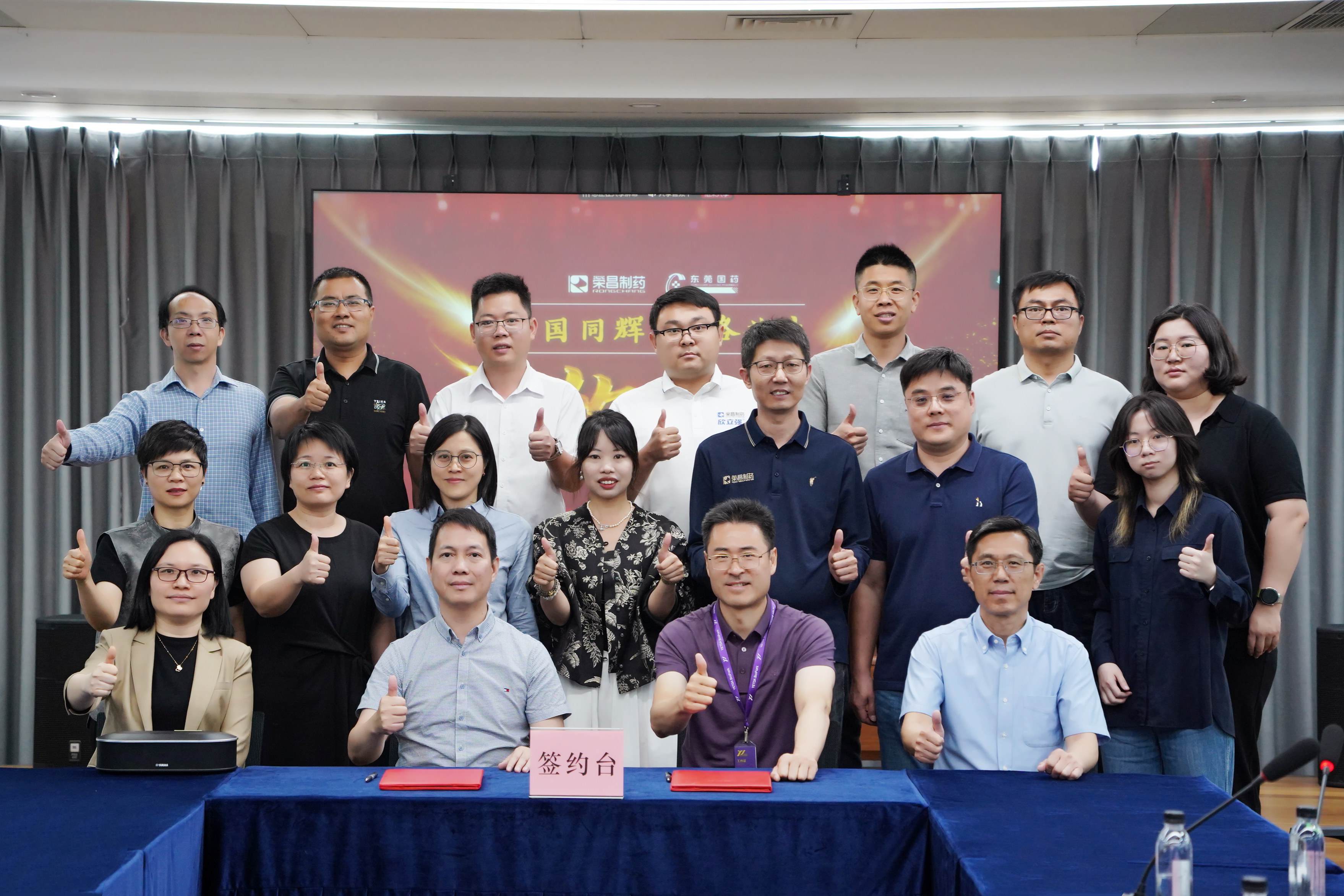 5月19日,荣昌制药与东莞国药战略合作对接会在荣昌生物医药园举行。广东省东莞国药集团有限公司副总裁刘浩文、采购总监李坤旋,荣昌制药董事长王荔强、副总裁孙成岗、OTC事业部总经理刘昆鹏等出席活动。